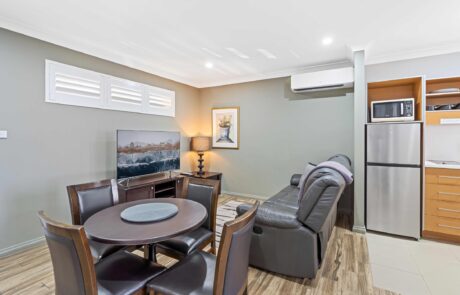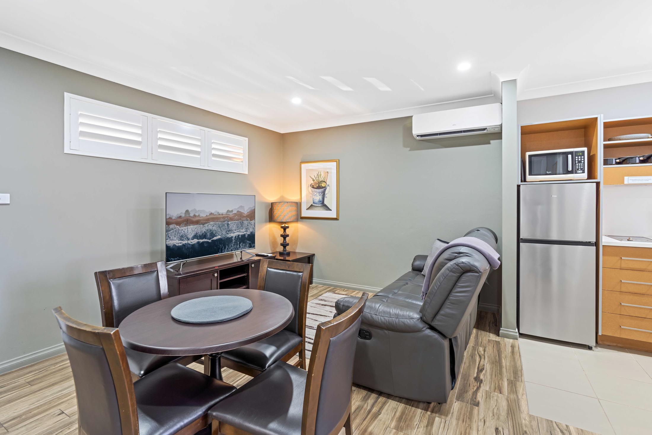 Experience the epitome of comfort and convenience in our spacious One Bedroom Suite, thoughtfully designed with your privacy and relaxation in mind. Nestled on the ground floor for easy access, this suite seamlessly blends the bedroom and living areas, offering distinct spaces for rest and leisure.