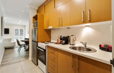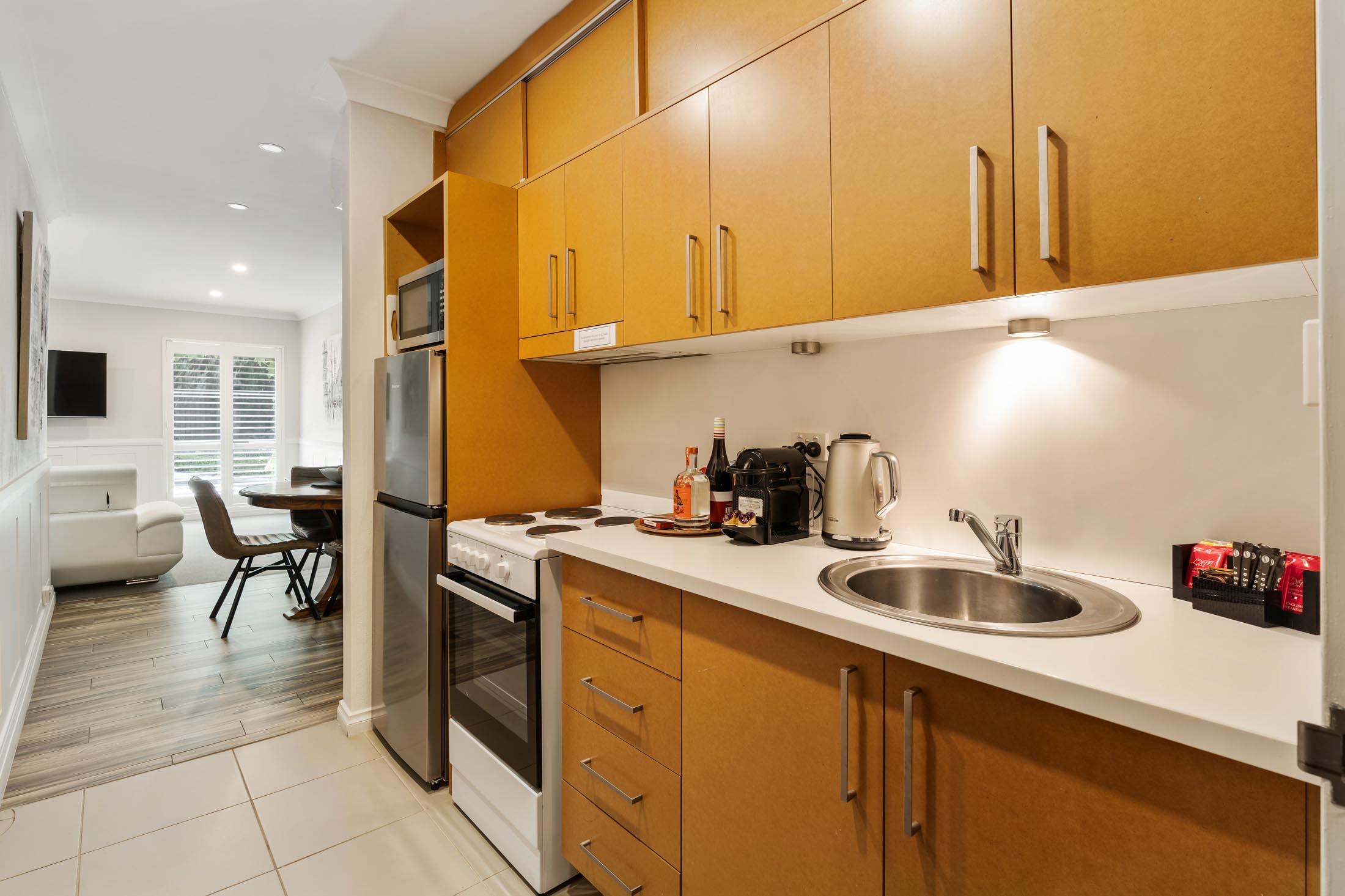 Discover the epitome of comfort and convenience in our One Bedroom Suite with Private Study, ideally situated on the ground floor for easy access. This suite is elegantly furnished with a kitchen and an ensuite bathroom, complemented by a distinct lounge/dining area for relaxation and meals. Business travellers will find the separate office space invaluable, equipped with a multi-function printer, a large flat-screen monitor, a wireless mouse and keyboard, creating an ideal environment for completing daily tasks with ease.
